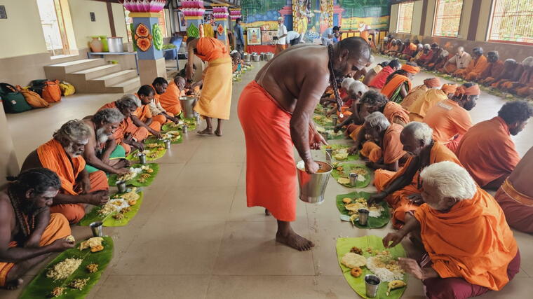 Focused on humanitarian sevas — feeding 3,000+ people daily and maintaining our goshala of 400+ desi cows at Tiruvannamalai.